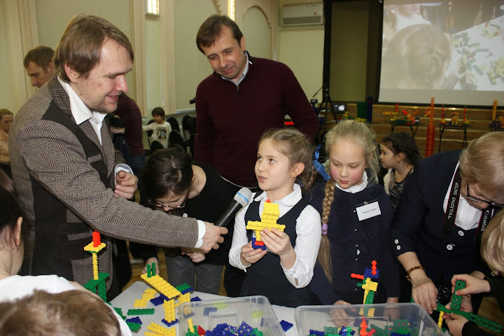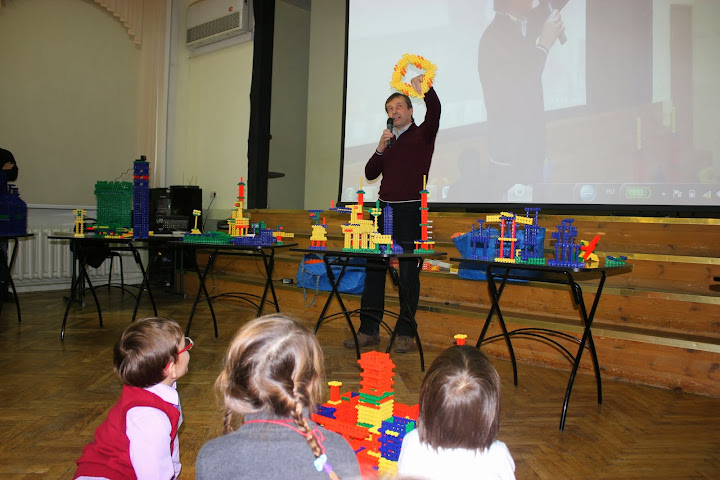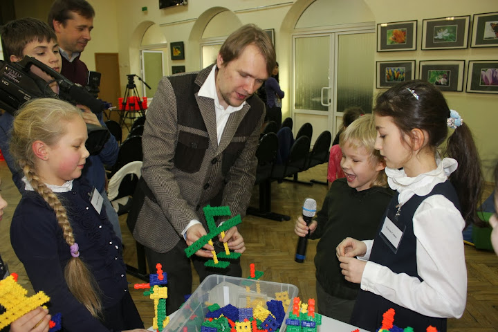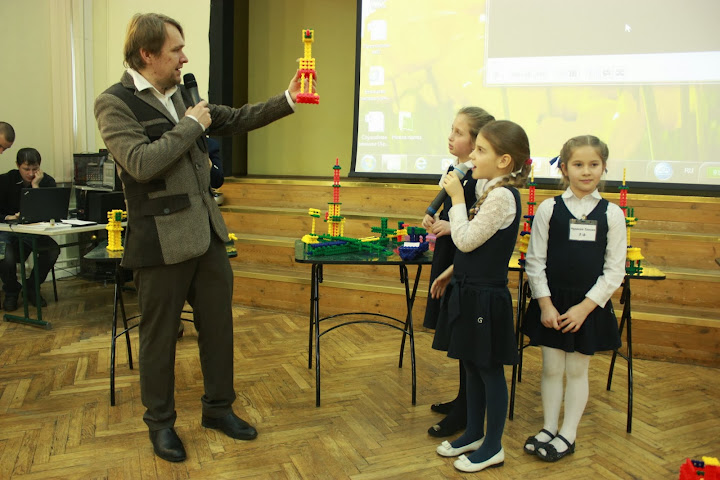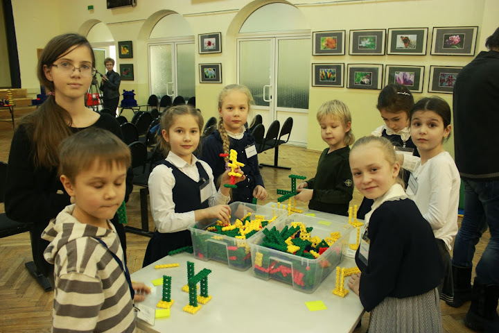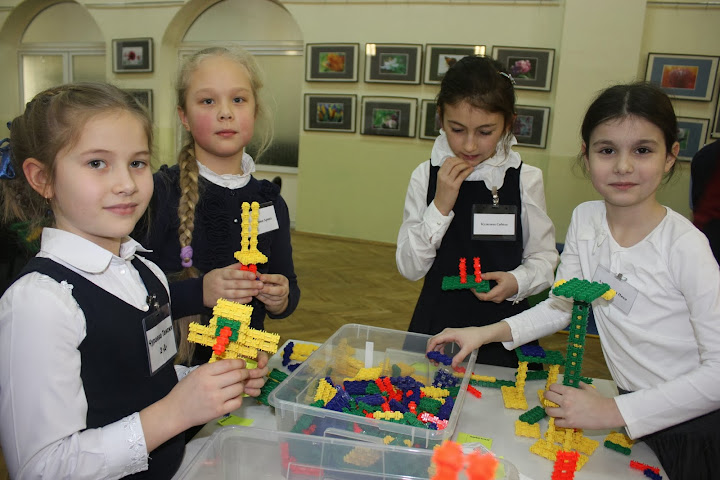 Дмитрием Андреевичем Соколовым. Участники семинара были ознакомлены с новыми интересными техниками сбора этого конструктора. Далее каждый из ребят показал, сделанную из конструктора модель, рассказал какие трудности возникали и что им показалось очень интересным и легким. В конце семинара юным изобретателям было дано задание за 30 минут создать модель на определенную тему. Работали в разновозрастных группах: студенты (выпускники школы), старшеклассники, младшие школьники, дошкольники. Наши ребята с готовностью принялись за дело и показали себя настоящими изобретателями.
